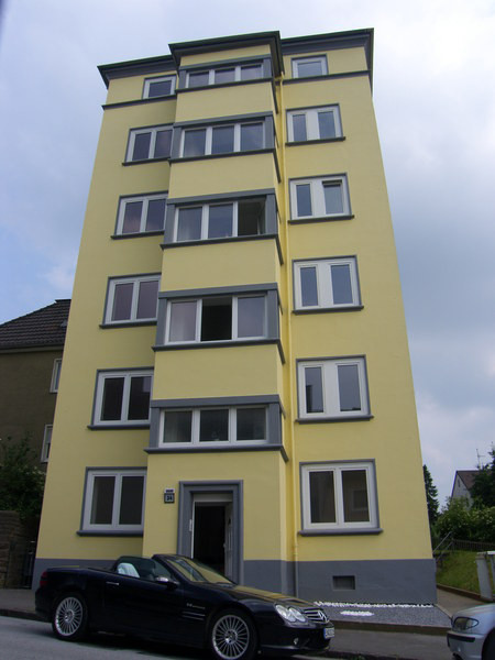 DieseWohnung befindet sich in einem interessanten Haus in gepfelgtem,modernisiertem Zustand und gewährt Ihnen einen traumhaften Ausblick über den Wuppertaler Osten. Auf jeder Etage befindet sich jeweils nur eine Wohnung. Die Elektrik sowie die Heizungsanlage wurden in 2006 komplett erneuert-es handelt sich hierbei um eine VAILLANT Gas-Zentral-Heizung. Das Treppenhaus wurde ebenfalls in 2007 renoviert, wobei auch alle Fenster gegen “ISO-Fenster” ausgetauscht wurden. Das Objekt verfügt über Kabelanschluss. Die komplette Fassade (alle Seiten) erhielt einen neuen Anstrich und wurde teilweise gedämmt. |